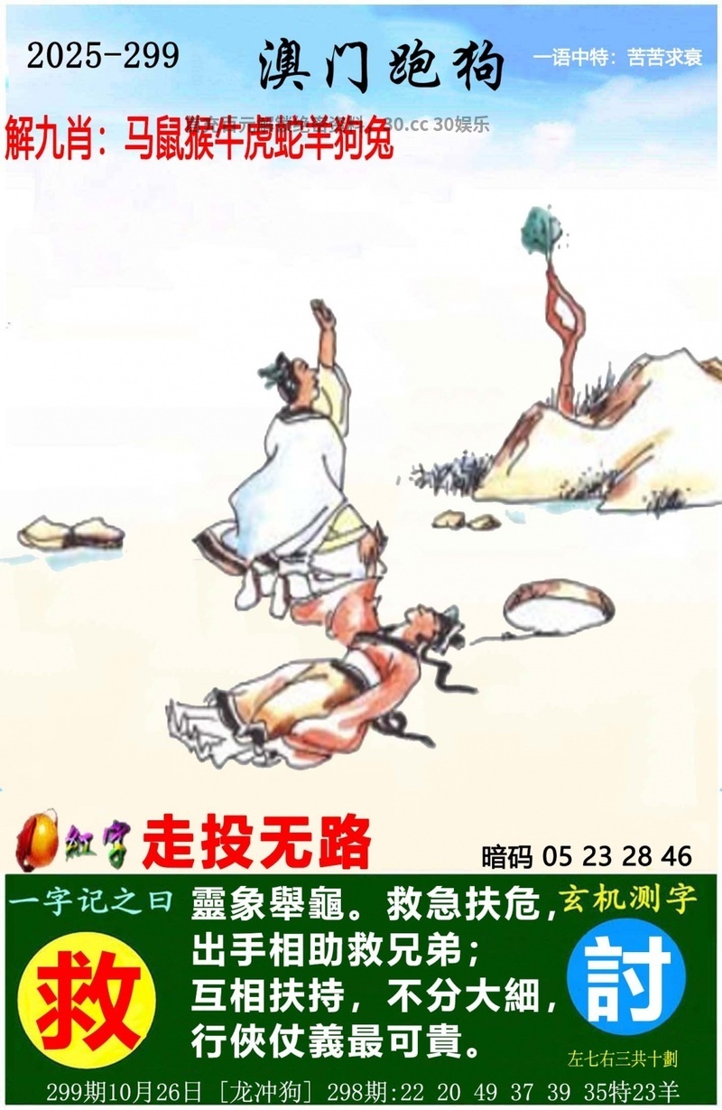| 299期:【跑狗特码诗】开蛇49 玄机诗云靈象舉龜。救急扶危,出手相助救兄弟;互相扶持,不分大細,行俠仗義最可貴。 诗句解图中是一个女人躺在地上旁边一个男人拉着她的手跪在地上向天空伸出手掌。解地肖蛇羊鸡狗鼠虎,走投无路,解凶丑生肖鼠牛虎猴狗猪 单双:单数 |